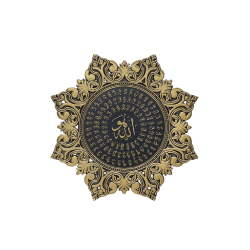 GOLD BLACK OCTAGONAL STAR - WITH VERSE PANELS ESMAUL HUSNA