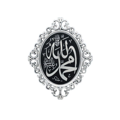 SILVER BLACK OVAL WITH VERSE PANELS ALLAH&MUHAMMED