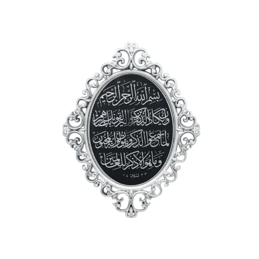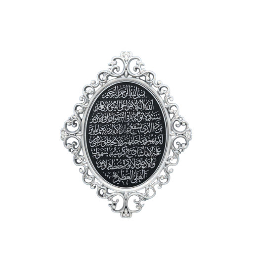 SILVER BLACK OVAL WITH VERSE PANELS AYETEL KURSI