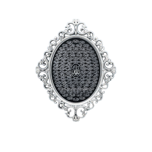 SILVER BLACK OVAL WITH VERSE PANELS ESMAUL HUSNA