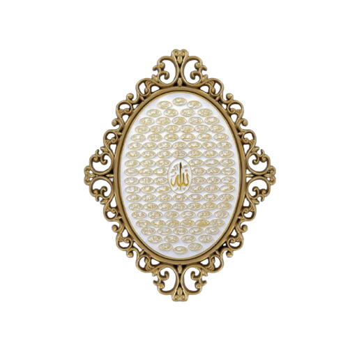 GOLD WHITE OVAL WITH VERSE PANELS ESMAUL HUSNA