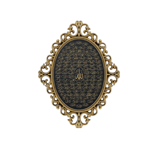 GOLD BLACK OVAL WITH VERSE PANELS ESMAUL HUSNA