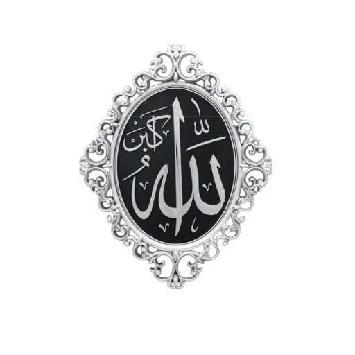 SILVER BLACK OVAL WITH VERSE PANELS ALLAH