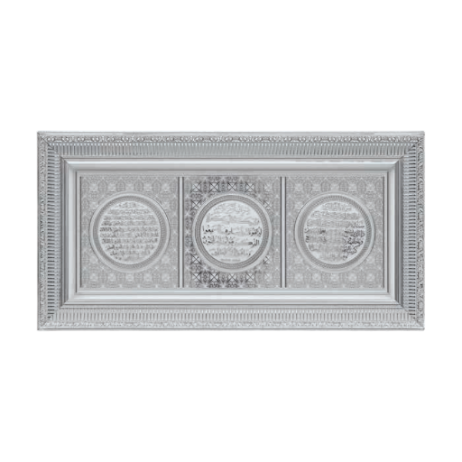 SILVER WHITE RECTANGLE FRAME WITH VERSES AYETEL KURSI&DEVIL EYE&BLESSING