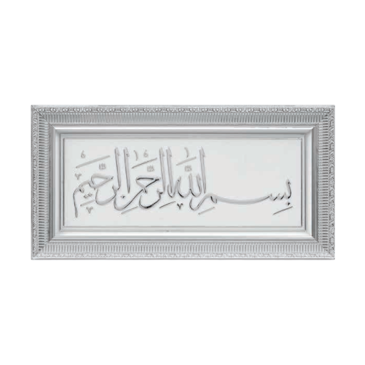 SILVER WHITE RECTANGLE FRAME WITH VERSES BISMILLAH