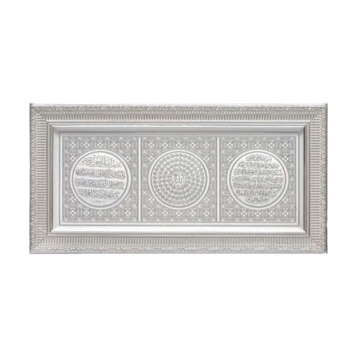 SILVER WHITE RECTANGLE FRAME WITH VERSES AYETEL KURSI&DEVIL EYE&TAWHID