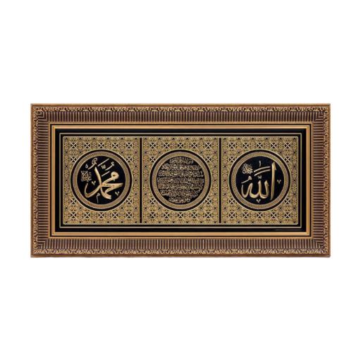 GOLD BLACK RECTANGLE FRAME WITH VERSES ALLAH&MUHAMMED&AYETEL KURSI