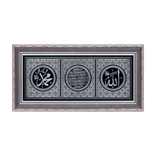 SILVER BLACK RECTANGLE FRAME WITH VERSES ALLAH&MUHAMMED&AYETEL KURSI