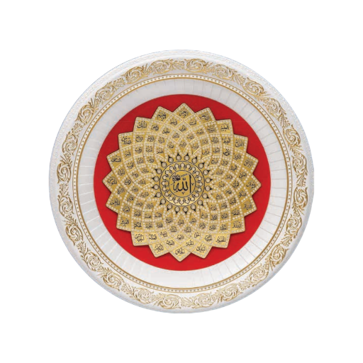 GOLD RED CIRCLE DAISY FRAME ESMAUL HUSNA WITH FEW DIAMOND