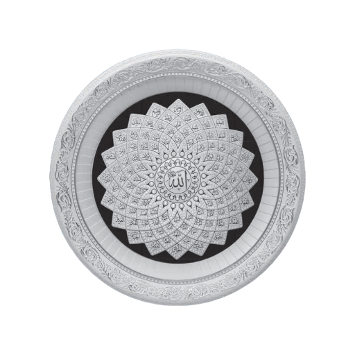 SILVER WHITE CIRCLE DAISY FRAME ESMAUL HUSNA WITH FEW DIAMOND