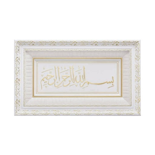 GOLD WHITE RECTANGLE FRAME WITH VERSES BISMILLAH