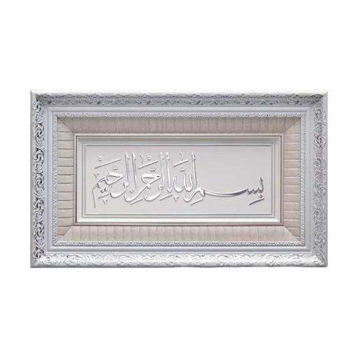 SILVER WHITE RECTANGLE FRAME WITH VERSES BISMILLAH